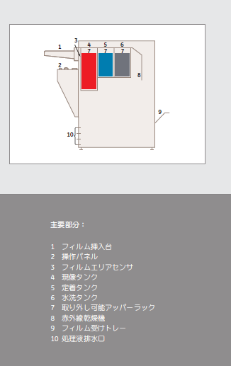1台で、特に、中程度のフィルム使用量向けに設計されています。シートフィルム、ロールフィルムを現像処理できます。