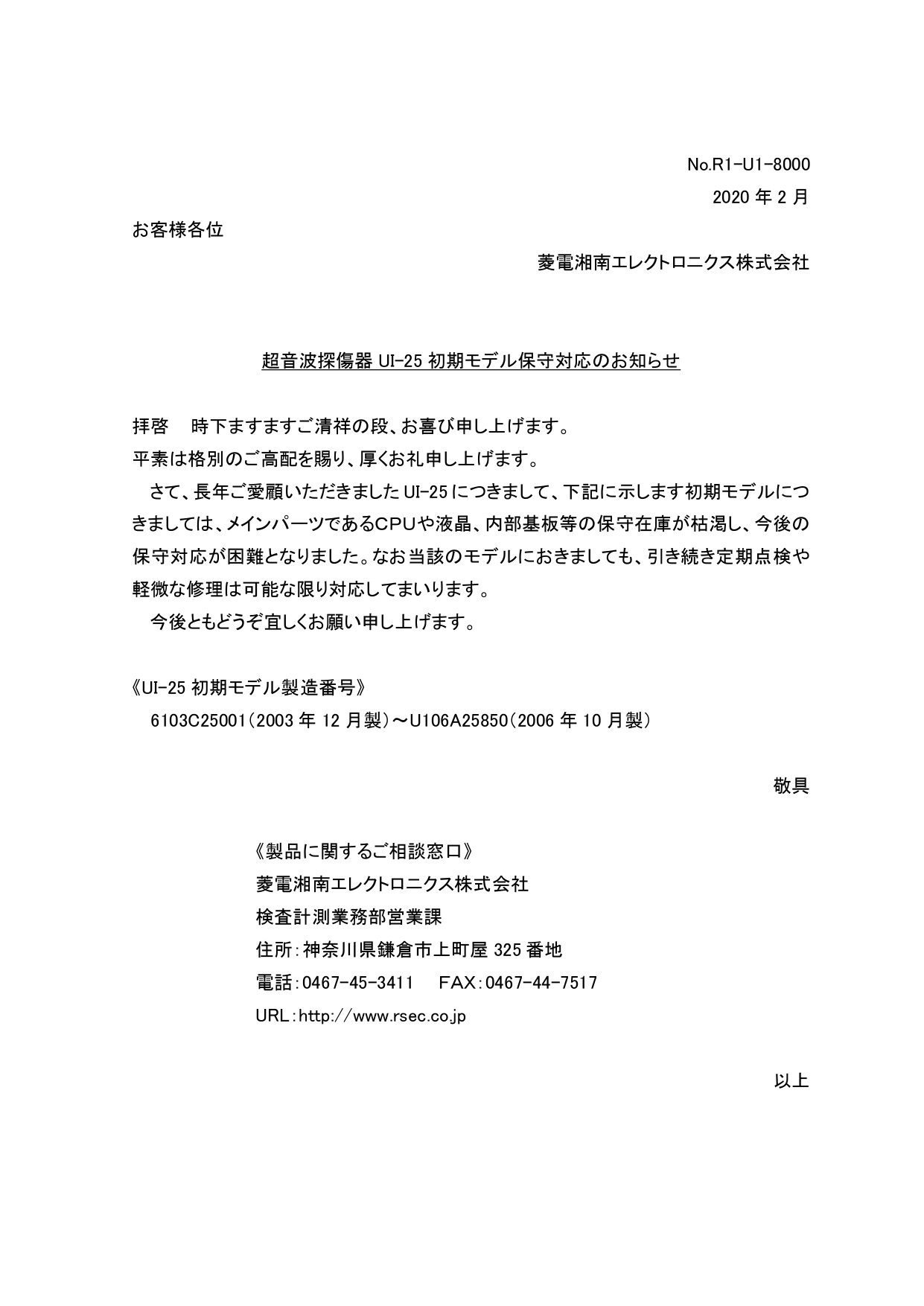 メーカサポート終了のお知らせ